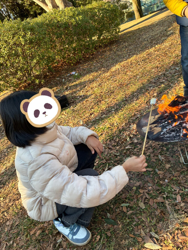 今度は焚き火台でマシュマロを焼きました♪