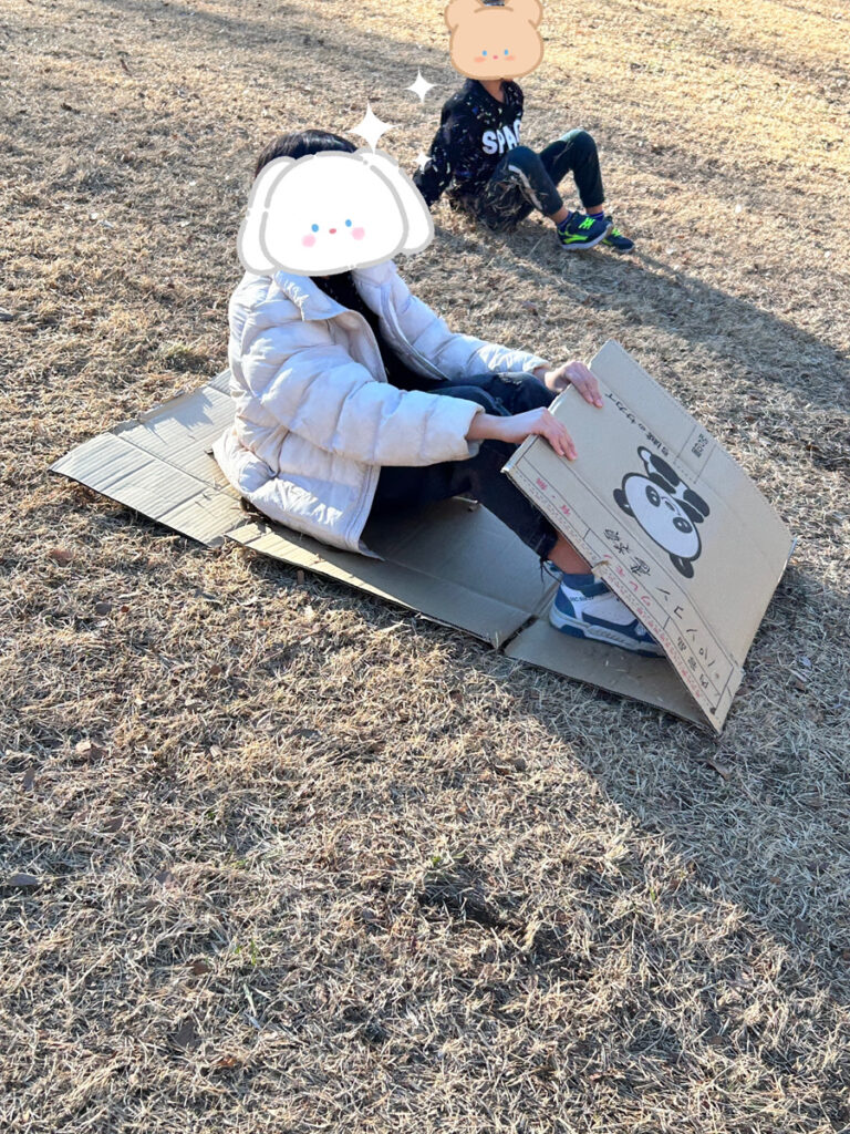 そんなこんなで帰る時間。ずっと坂で段ボールそりをしていた子が「遊具で遊び忘れた~!!!」と最高のリアクションをしてくれていました( ´艸`)ワラ