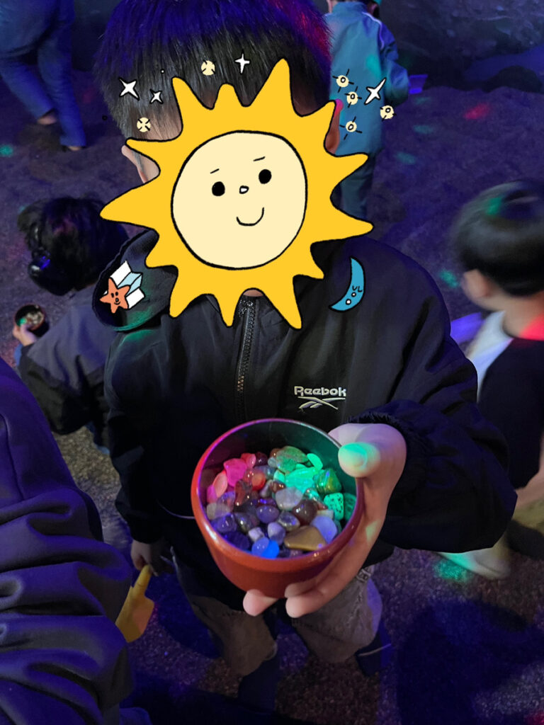 スコップで地面を掘り、宝石を見つけると「あったー!」と目を輝かせながらスタッフに見せてくれました♪