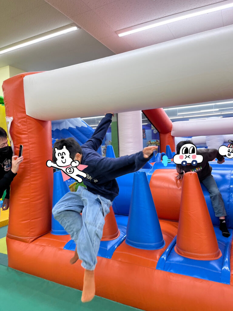 初めて行く場所でしたが屋内遊園地としてはとても広く、ふわふわドームの種類が豊富で他にもサラサラ砂場、ゲームセンター、ターザンロープや工作広場など、子どもたちにとって楽しいものがいっぱいありました!