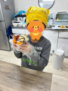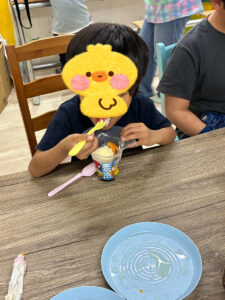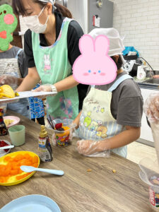 今回のイベントは、クッキングです。みんなでパフェ作りに挑戦しました。